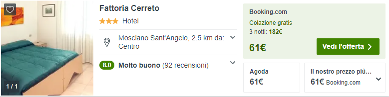 Come mostrato sopra, il prezzo in offerta per una camera tripla è di €61/notte con colazione inclusa. ❓ Come prenotare? Utilizza il link in alto e le date campione in arancione.