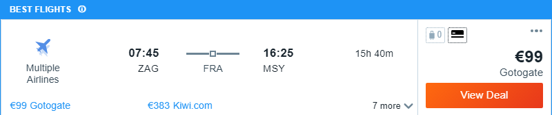 Prezzo super invitante per i nostri viaggiatori del nord est Italia! Si vola da Zagabria a New Orleans con soli €99 per un biglietto solo andata!